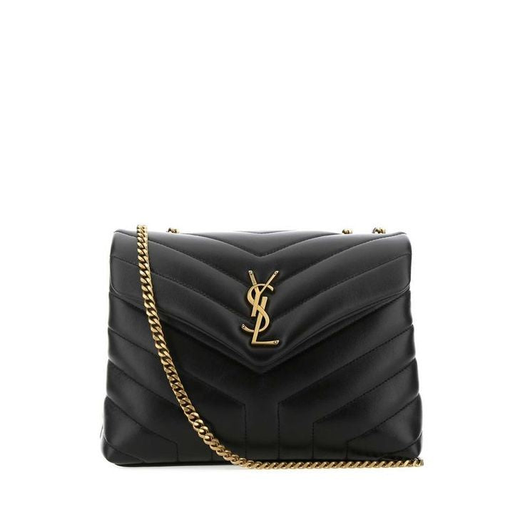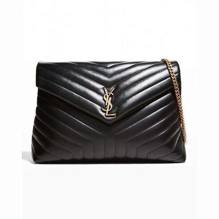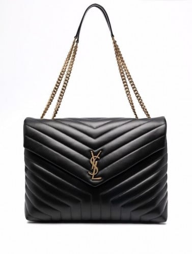 Crafted from soft quilted leather in a chevron pattern, this medium-sized shoulder bag is adorned with the iconic YSL monogram in antique gold. Featuring a dual chain and leather strap, it’s the perfect mix of elegance and everyday functionality.