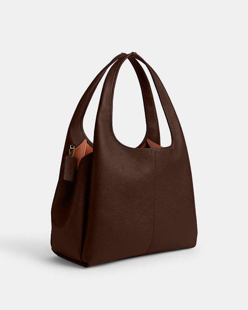 A sophisticated medium-sized hobo bag crafted from premium leather in a timeless brown shade. Designed with a sleek silhouette and accented with a gold-tone logo, making it perfect for both everyday wear and special occasions.