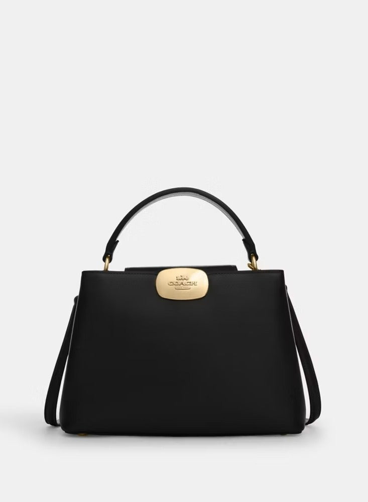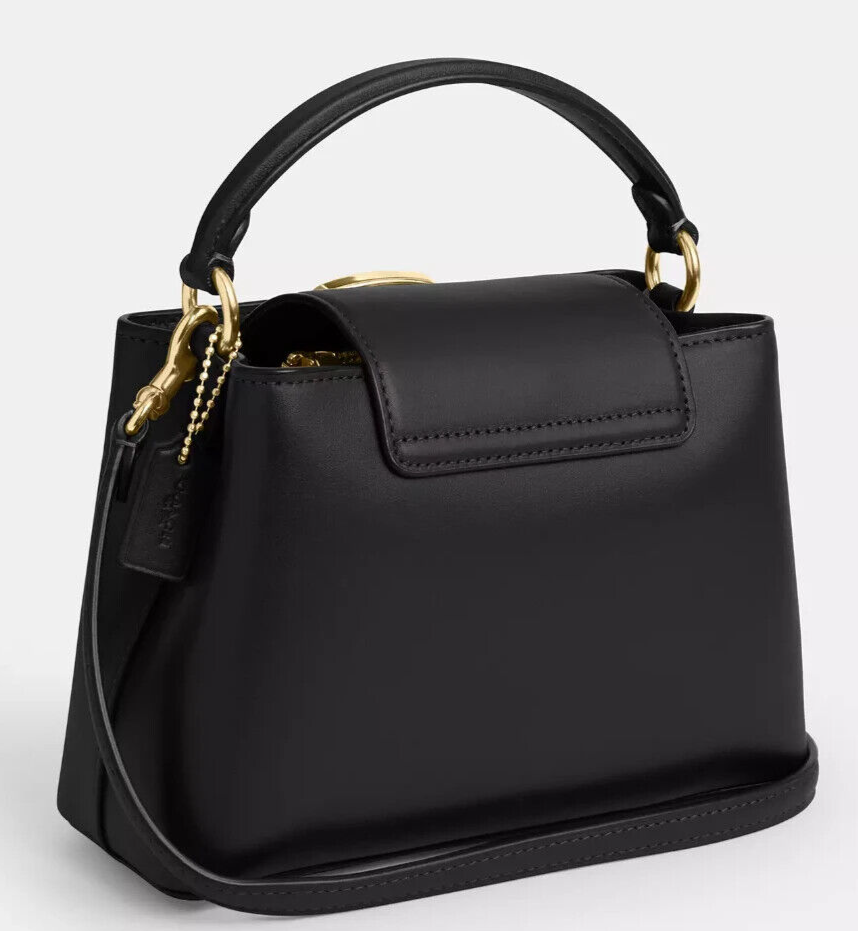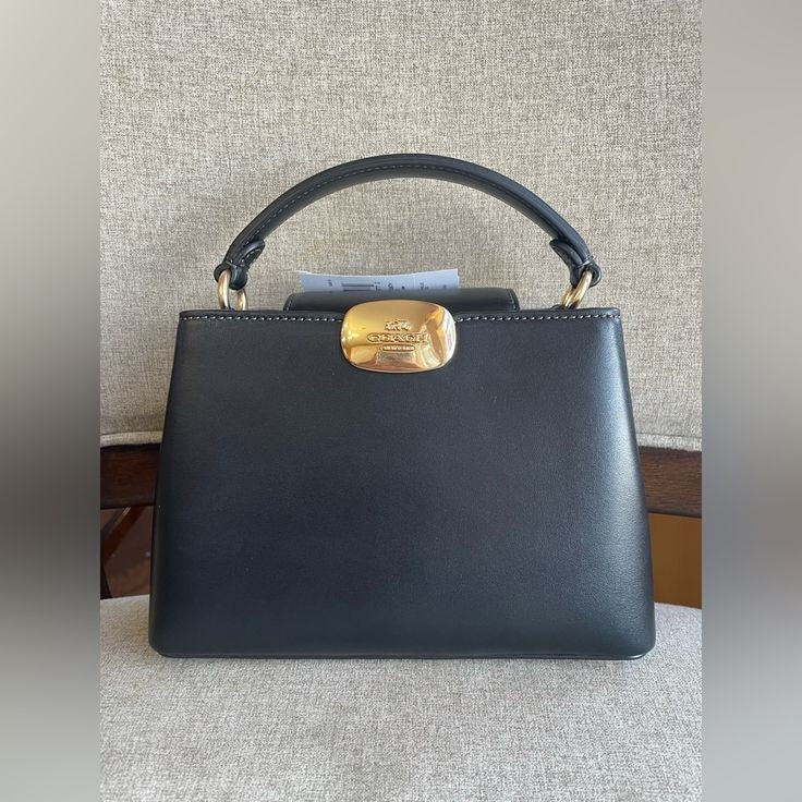 The Coach Luna bag features a timeless design in sleek black with elegant gold details, making it the perfect statement piece for any occasion.