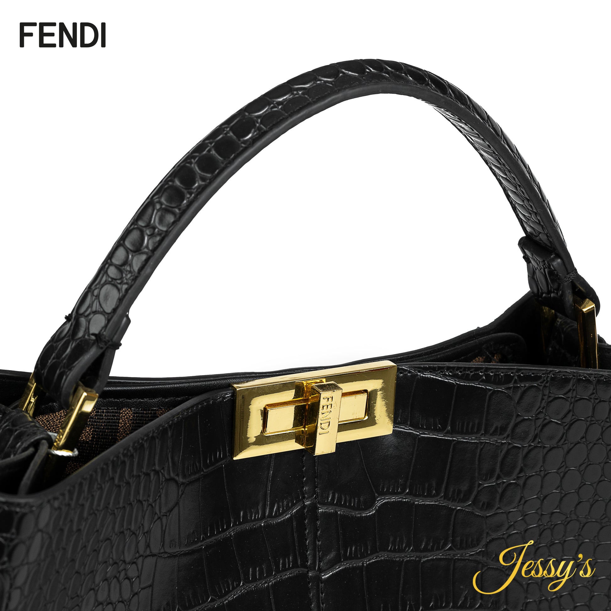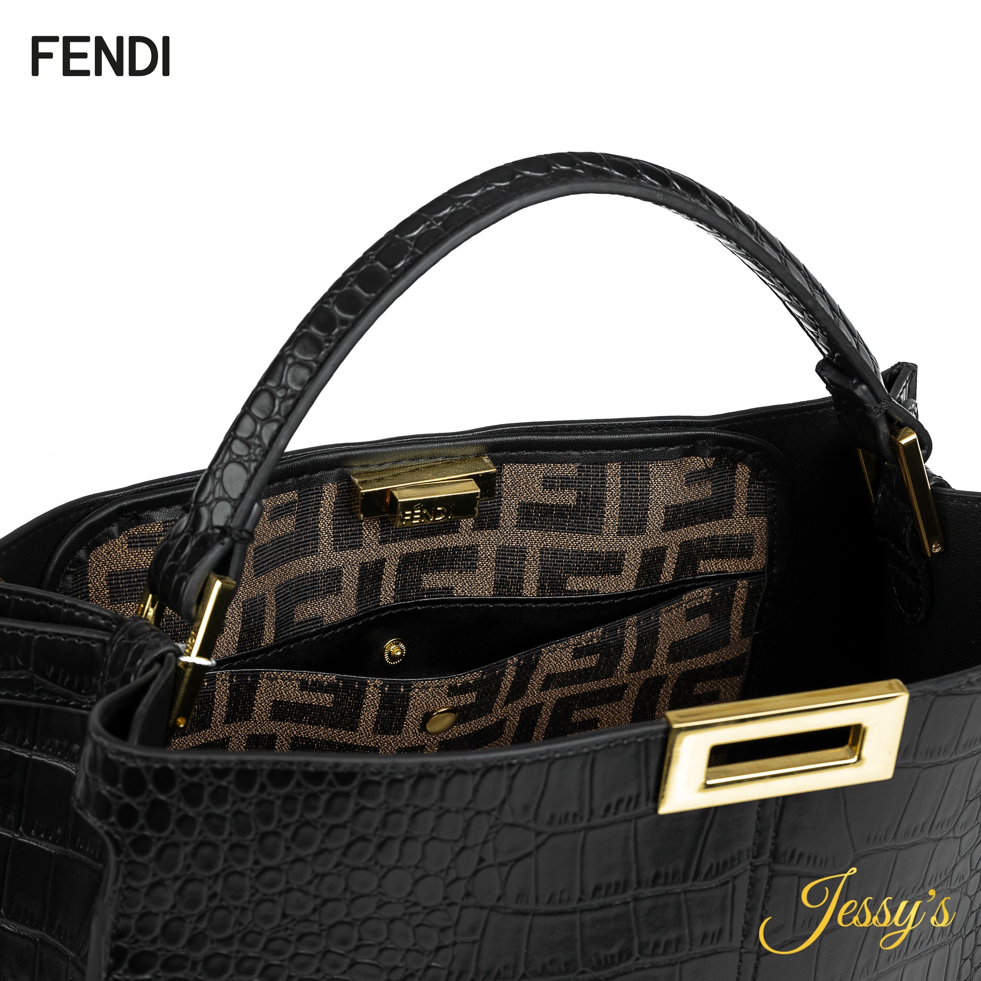 Statement handbag in crocodile-embossed black leather with a spacious silhouette and gold-tone twist-lock, blending iconic design with luxury craftsmanship.