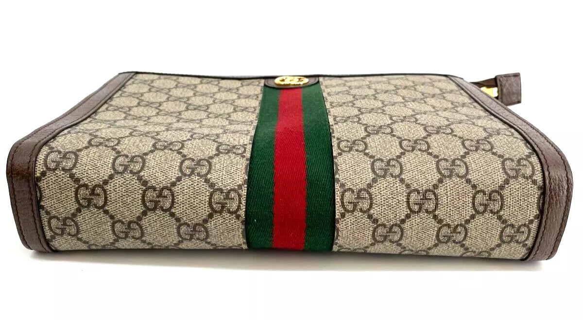 A stylish rectangular Gucci bag crafted from classic GG monogram canvas with natural leather details. Featuring the iconic gold GG emblem and Gucci’s signature green and red web stripe, this compact piece blends practicality with timeless elegance—perfect for daily use.