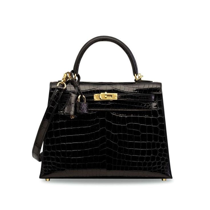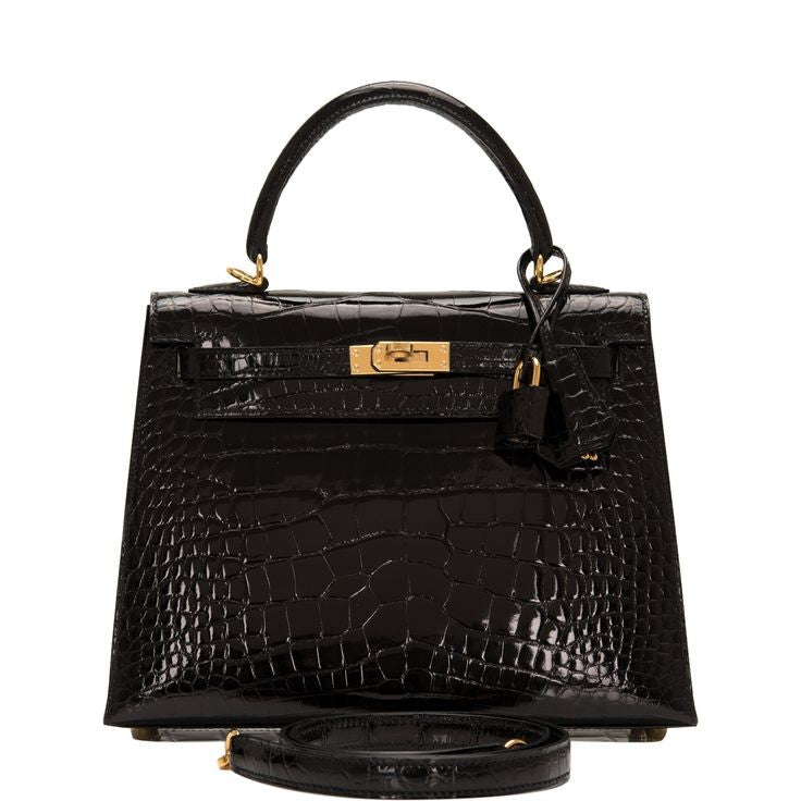 Elegant black crocodile leather with gold hardware, a timeless icon of sophistication and exclusivity.