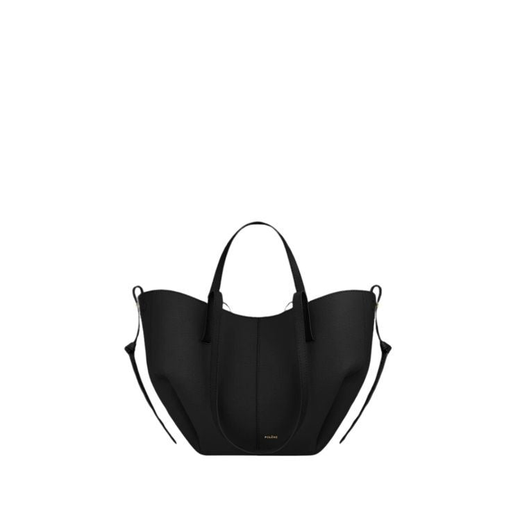 The Cyme Bag by POLÈNE combines sculptural design with everyday functionality. Crafted from smooth black calf leather, its bold silhouette makes it a versatile must-have for any modern wardrobe.