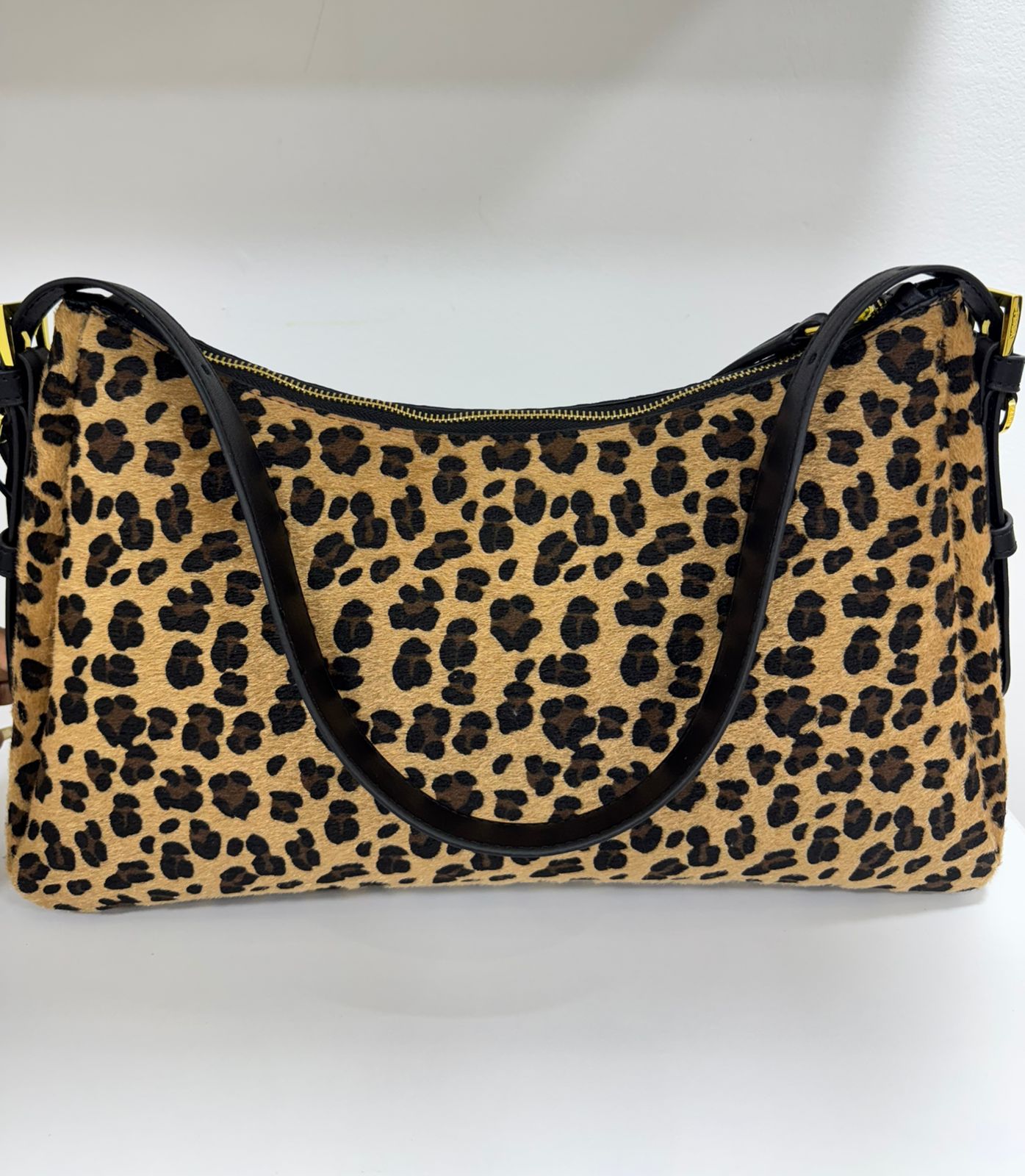 Luxury Prada shoulder bag featuring a bold leopard print design. Crafted from premium materials with black detailing and gold-tone hardware adorned with the iconic Prada logo. A chic statement piece that adds elegance and edge to both casual and formal outfits.