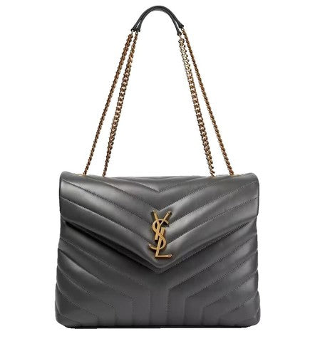 Made from luxurious chevron-quilted leather, this large Loulou shoulder bag is finished with the iconic YSL monogram in antique gold. Featuring a double chain and leather strap for versatile styling, it’s a timeless piece that balances elegance and practicality.
