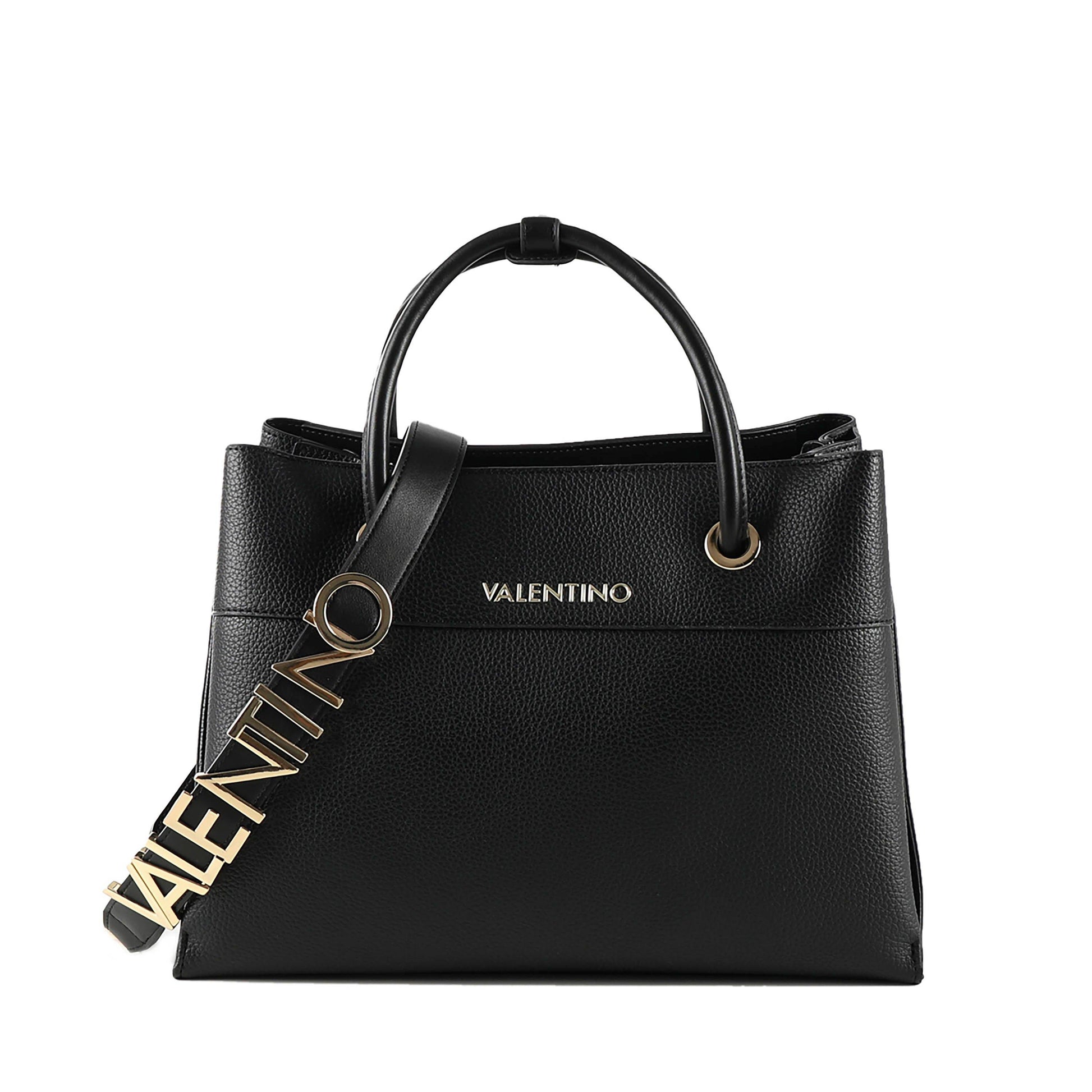 A luxurious Valentino tote crafted from premium leather with a sleek, structured design. Features a bold wide shoulder strap with a metallic VALENTINO logo, offering both style and functionality for your everyday essentials.